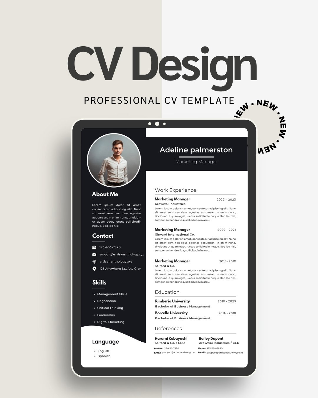 • 1x Modern Professional CV Template (Editable in Canva, Word, Google Docs)