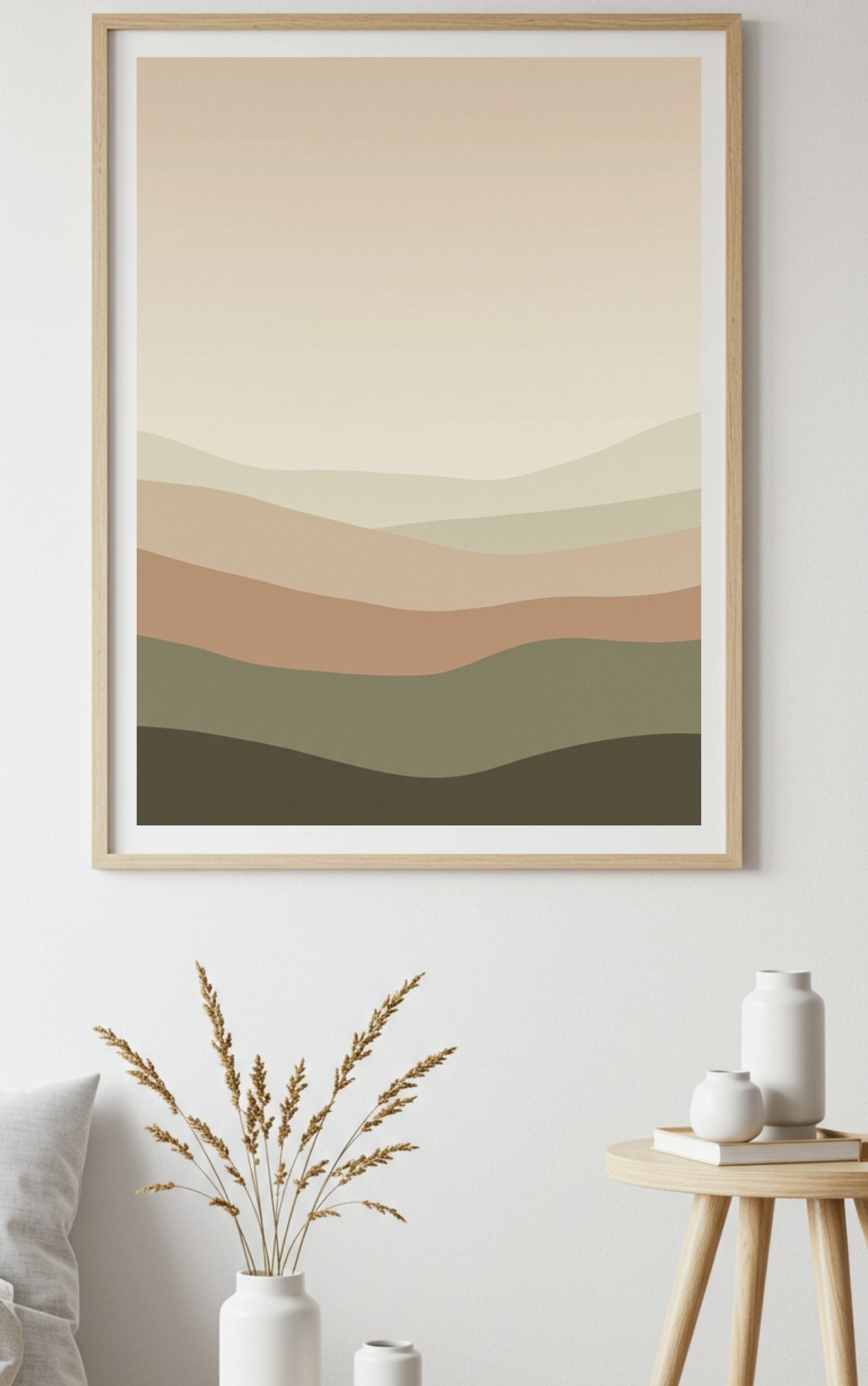 Add warmth, serenity, and modern elegance to your home with this Japandi-inspired abstract landscape print. A timeless, affordable way to refresh your walls instantly.