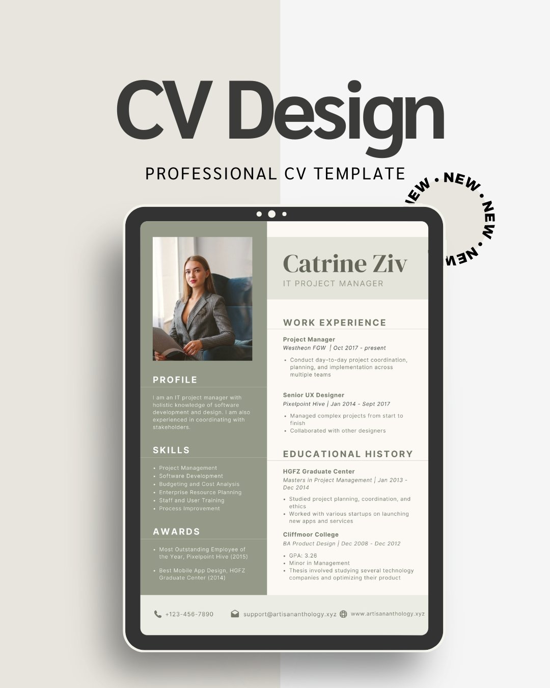 • 1x Modern Professional CV Template (Editable in Canva, Word, Google Docs)